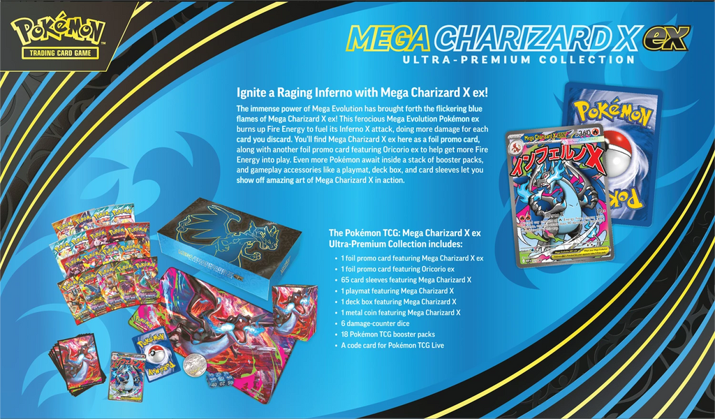 The Pokémon TCG: Mega Charizard X ex Ultra-Premium Collection includes: